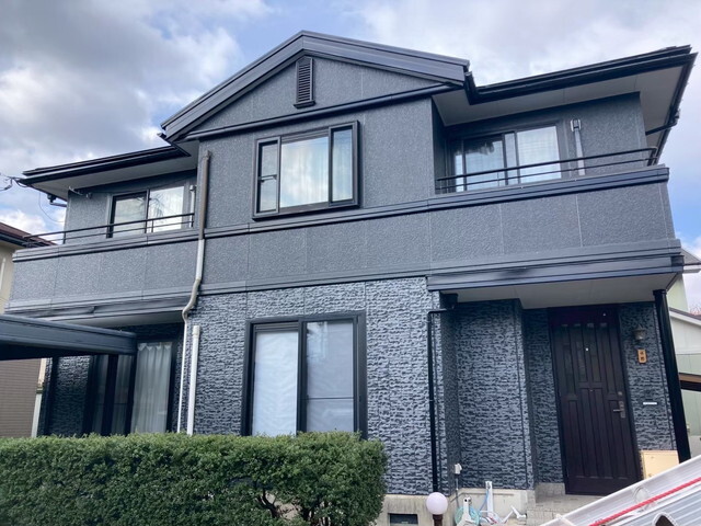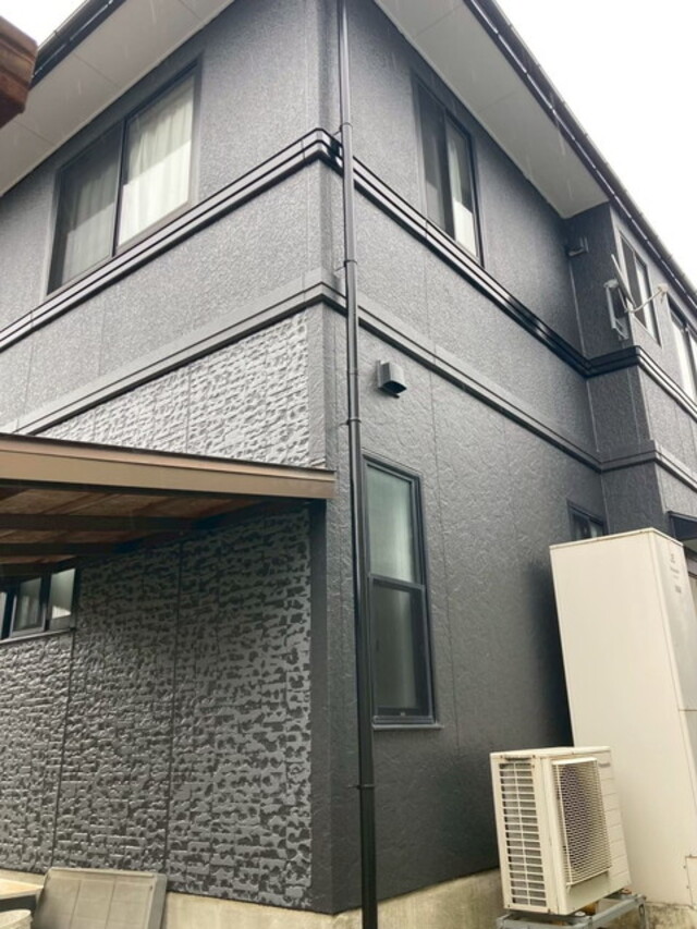 富山市M様邸 築年数30年。凍害が進んでいた箇所もあり、防水加工で施工させていただきました。サイディングがレンガ調であった為、一階部分はダブルトーンで他の面とは違い、立体感と耐久性をプラスして施工させていただきました。Before①After①Before②After②Before③After③